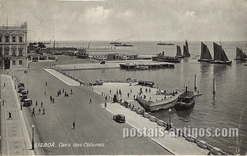 Lisboa. Cais das Colunas - Portugal. Editor/Autor: AT (marca) - BP não numerado. Bilhete postal ilustrado circulado de Sintra (Portugal) para Escócia, em 1937. Fonte : coleção particular Luís Gaspar. ___