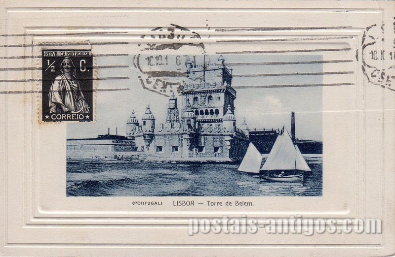Bilhete postal antigo circulado em Portugal de Lisboa para Lisboa, em 1914.